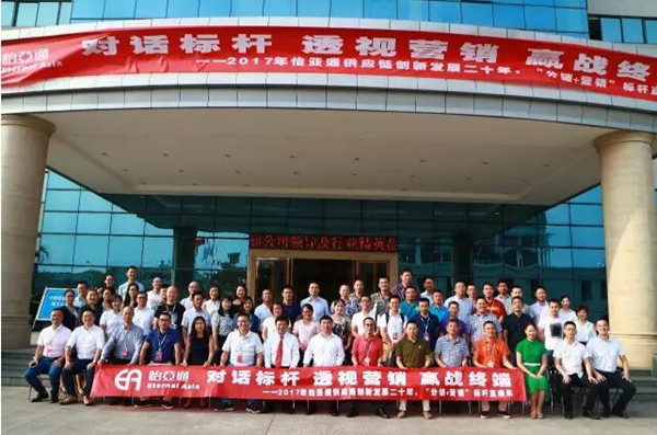 2017年9月21日-9月22日,為期2天的“對(duì)話(huà)標(biāo)桿 透視營(yíng)銷(xiāo) 贏戰(zhàn)終端-2017年怡亞通供應(yīng)鏈創(chuàng)新發(fā)展二十年,‘分銷(xiāo)+營(yíng)銷(xiāo)’標(biāo)桿直通車(chē)”全國(guó)首站跨區(qū)域標(biāo)桿游學(xué)在公司順利開(kāi)展。來(lái)自怡亞通全國(guó)10個(gè)省區(qū)的日化合資公司總經(jīng)理及銷(xiāo)售負(fù)責(zé)人、上游廠(chǎng)商等共計(jì)61人參加。本次交流活動(dòng)由怡亞通供應(yīng)鏈大學(xué)主辦、廣西科桂貿(mào)易有限責(zé)任公司承辦,并得到怡亞通品牌服務(wù)平臺(tái)、380分銷(xiāo)平臺(tái)運(yùn)營(yíng)中心與廣西省區(qū)的大力支持。