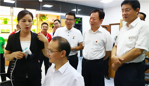 在調(diào)研集團(tuán)公司源生堂生發(fā)、養(yǎng)發(fā)項(xiàng)目時,黃總向徐部長介紹所有的源生堂產(chǎn)品都是公司自主研發(fā),每一款都有專利技術(shù)。徐部長認(rèn)為源生堂生發(fā)養(yǎng)發(fā)屬于大健康產(chǎn)業(yè),更是健康生活的一部分;他指出:面對不斷變化的經(jīng)濟(jì)發(fā)展形勢,希望和桂集團(tuán)要進(jìn)一步增強(qiáng)發(fā)展信心,增強(qiáng)品牌意識,加大自主創(chuàng)新力度,增強(qiáng)產(chǎn)品的文化深度,提升品牌形象,把企業(yè)做優(yōu)做大做強(qiáng)。