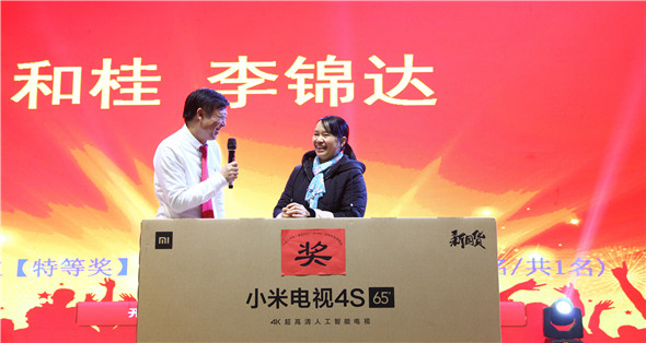 歡聚一堂,觥籌交錯,現(xiàn)場抽獎禮品送不停,氣氛歡快而熱烈。集團(tuán)領(lǐng)導(dǎo)親手為獲獎幸運兒送上豐厚的獎品,綿延不斷的歡聲笑語、祝福喝彩激蕩起一陣陣熱潮,久久縈繞在耳際不曾散去。歲月更迭,不變的是和桂人一家親的情,難忘今宵,今宵難忘,和桂人滿懷感恩,滿載希望,為昨日干杯!為未來加油!