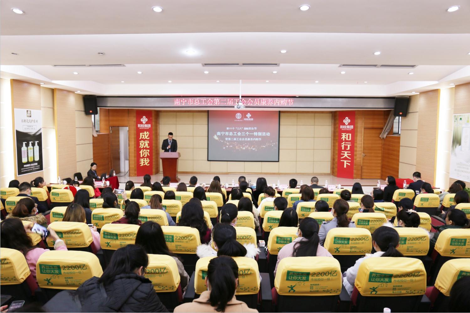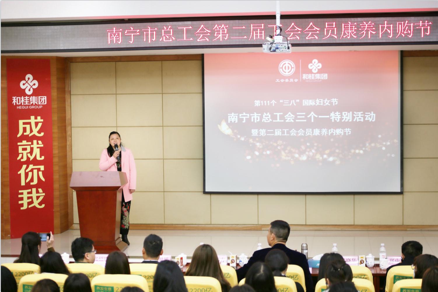 在第111個(gè)“三八”國際婦女節(jié)到來之際,為進(jìn)一步激發(fā)全市女職工愛崗敬業(yè)、銳意進(jìn)取的工作熱情,充分發(fā)揮“半邊天”的作用,3月5日,南寧市總工會(huì)走進(jìn)和桂集團(tuán),開展“三個(gè)一”特別活動(dòng),通過“一場權(quán)益講座”“一場康養(yǎng)講座”“一個(gè)內(nèi)購節(jié)”,與南寧市基層工會(huì)的女職工共慶節(jié)日,致敬了不起的綠城巾幗!