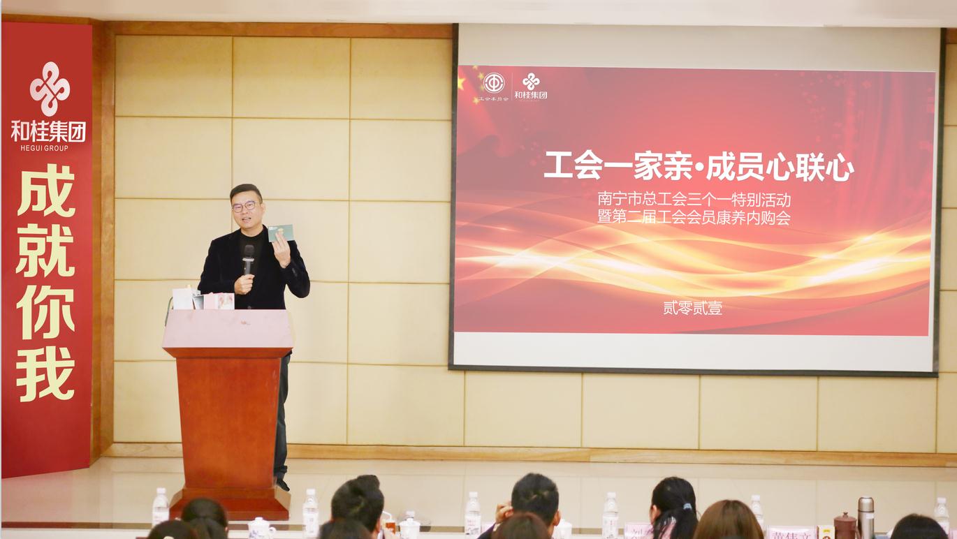 和桂集團(tuán)總裁黃偉文表示,和桂集團(tuán)在供應(yīng)鏈和康養(yǎng)領(lǐng)域具有領(lǐng)先優(yōu)勢,在南寧市總工會(huì)的指導(dǎo)下,集團(tuán)工會(huì)積極創(chuàng)新,服務(wù)得到很大提升。希望與各級(jí)工會(huì)系統(tǒng)加強(qiáng)交流合作,普惠職工,讓廣大職工享受到健康的生活方式,在個(gè)人及家庭日常消費(fèi)上也能享受到真正的實(shí)惠。