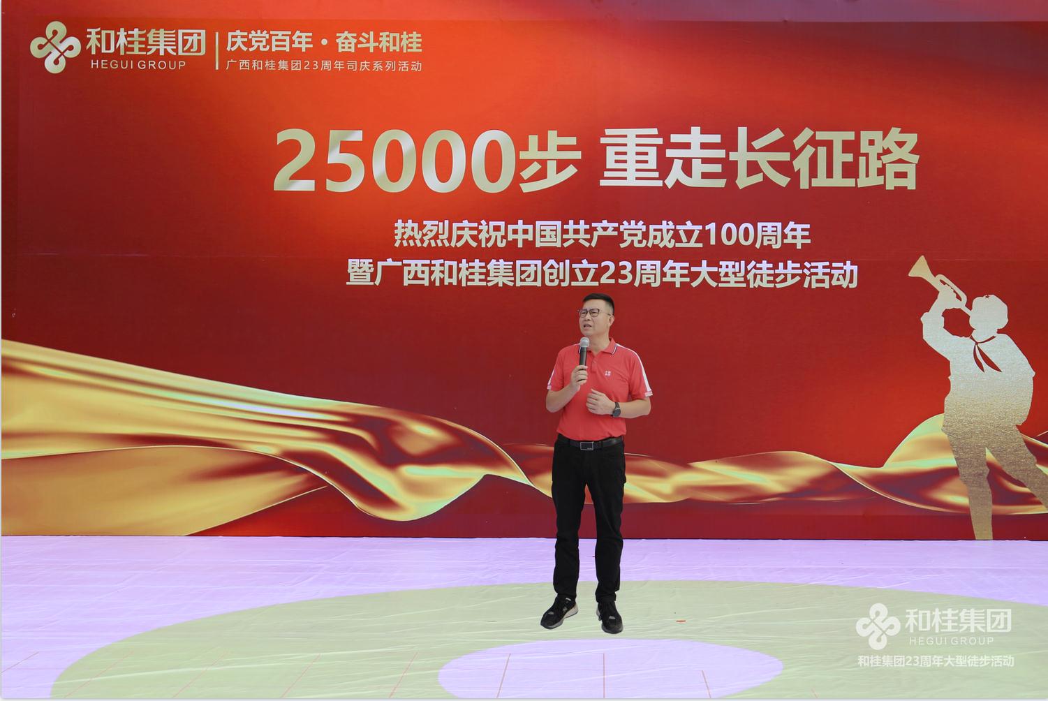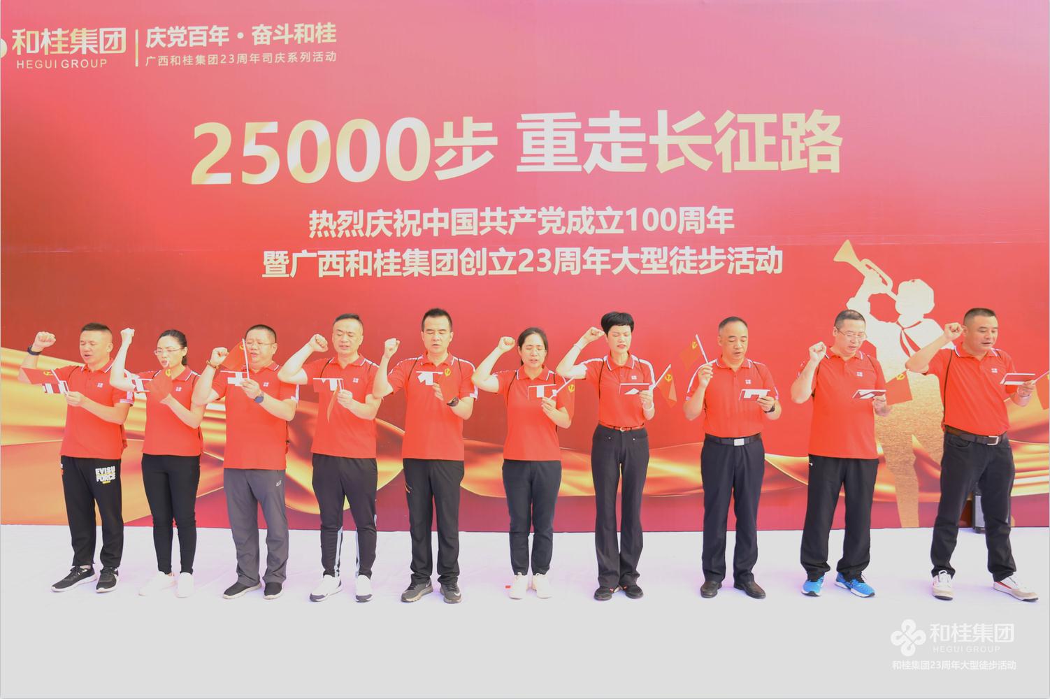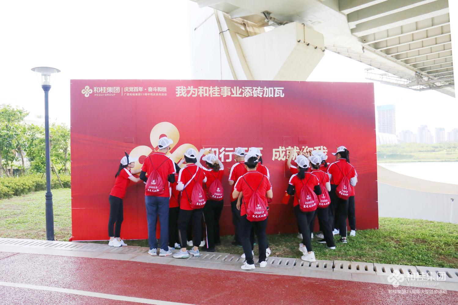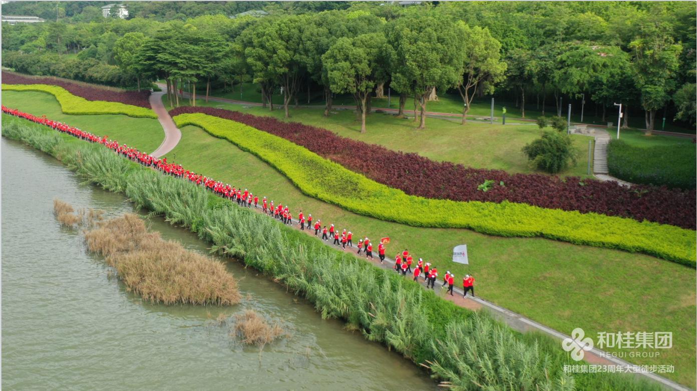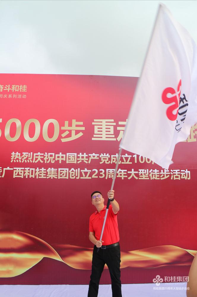 在建黨100周年之際,和桂集團(tuán)喜迎創(chuàng)立23周年司慶。6月26日,“25000步·重走長(zhǎng)征路”2021和桂集團(tuán)23周年司慶徒步活動(dòng)盛大舉行。和桂集團(tuán)董事長(zhǎng)黃偉文,攜300名和桂家人集結(jié)邕江河畔,用一場(chǎng)酣暢淋漓的25000步徒步之旅,傳承長(zhǎng)征精神,凝聚奮進(jìn)力量。