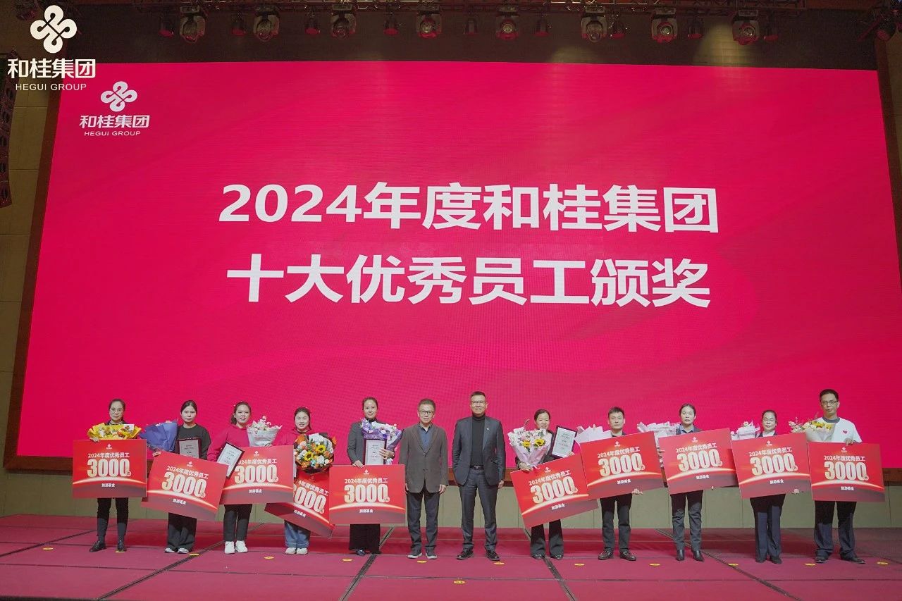 榮譽(yù)屬于每一位奮斗的你。晚宴上,和桂集團(tuán)為過(guò)去一年勤勉奉獻(xiàn)、業(yè)績(jī)突出的優(yōu)秀員工頒發(fā)了榮譽(yù)獎(jiǎng)項(xiàng),以此表彰他們的辛勤耕耘與卓越成就。